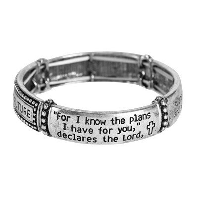 Dicksons I Know The Plans Hope Future Engraved Verse Women's One Size Silver Plated Stainless Steel Four-Tile Stretch Bracelet
