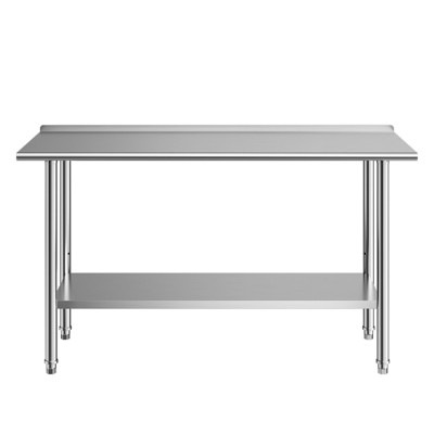 VEVOR Stainless Steel Work Table, 24x60 Inch Food Prep Table with Backsplash, Commercial Kitchen Workstation with Adjustable Undershelf, Silver