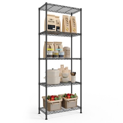 SONGMICS Storage Shelf, Metal Wire Shelving Unit, Adjustable Shelves, 5 Tier, 11.8 x 23.6 x 63.4 Inches, Ink Black