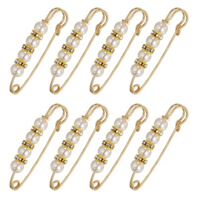 Unique Bargains Pearls Brooch Rhinestones Fashion Safety Pins 8 Pcs 2.17" White
