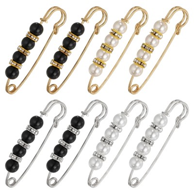 Unique Bargains Pearls Gold Alloy Rhinestones Safety Pins 8 Pcs 2.17" Black