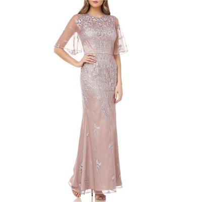 JS Collections Womens Embroidered Flutter Sleeve Gown Dress