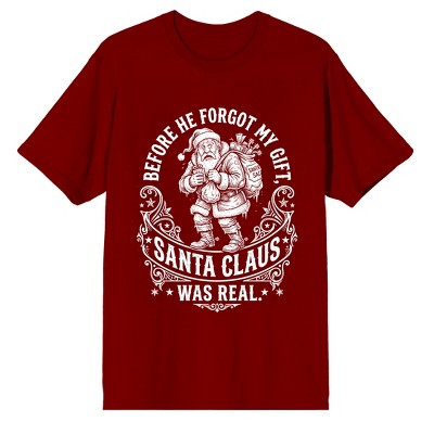 Santa Claus Was Real Adult Red Crew Neck Short Sleeve T-shirt