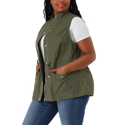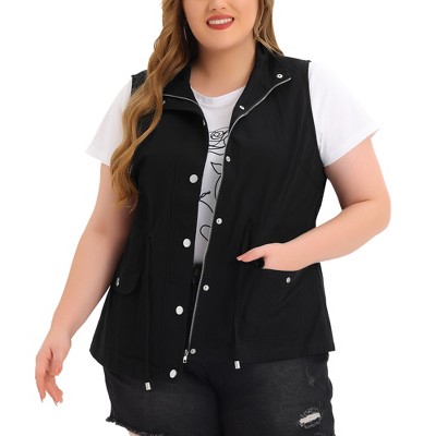 Women's Plus Size Utility Cargo Pockets Drawstring Waist Sleeveless Scrub Vests - Agnes Orinda