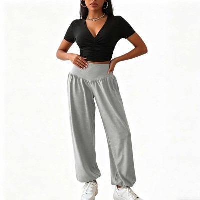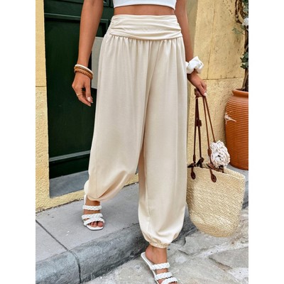 Women's Loose Fit High Waist Pants, Cuffed Ankle Wide Leg Casual Trousers