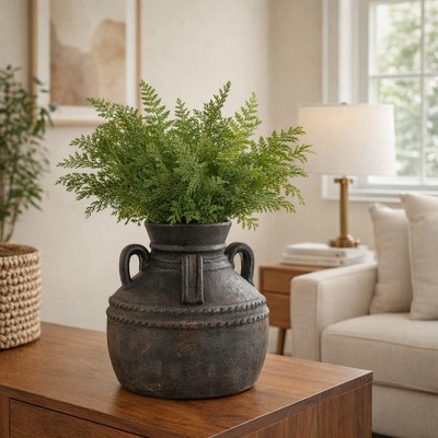 Vase Terracotta Pottery Handled Textured Matte Finish Casual Home Bedroom Office Decor - 22" Ivory & Tan