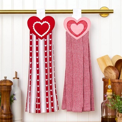 The Lakeside Collection Valentine's Day Kitchen Tie Towels Hearts Set of 2 -