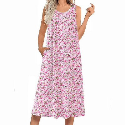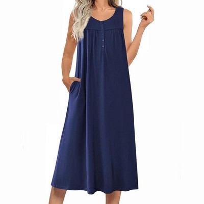 Ekouaer Nightgowns for Women Long Sleeveless Night Gowns Ladies Soft Nightdress Victorian Sleepwear with Pockets