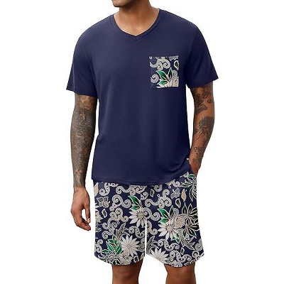 Ekouaer Mens Pajamas Set Soft Lounge Set V Neck Sleep Nightwear Short Sleeve Pjs with Pocket