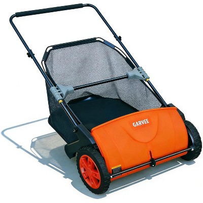 Manual Push Lawn Sweeper 21in , Yard Leaf Debris Collector with 3.5 Cu. Ft. Collection Bag for Lawns & Driveways, Foldable Storage Design,Light Blue
