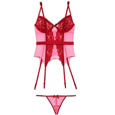 Avidlove Lingerie for Women Lace Bodysuit Teddy One Piece Lingerie Lace-up Back Cut Out Lingerie True Red L