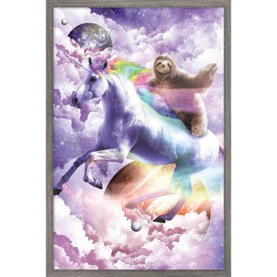 Trends International James Booker - Space Sloth Riding On Unicorn Framed Wall Poster Prints