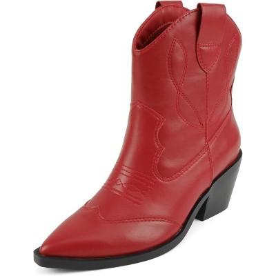 Soda “BLAZING” Women's Western Ankle Boots, Stitched, Pointed Toe, Low Heel