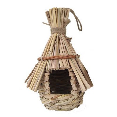 A&E Cage Company Happy Beaks Tiki Hut Nest Bird Plush Toy: Seagrass Material, Cuddle Pet Activity, 6 Length, 0.5 Weight