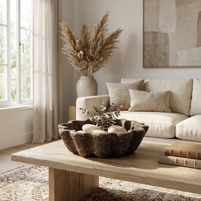 Decorative Wood Scalloped Bowl for Coffee Table Decor - Centerpiece Table Decorations for Home, Kitchen, Living Room, and Dining Room