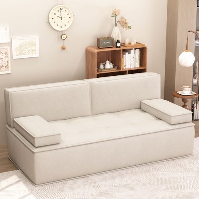 MAYEERTY 70 Inch Multifunctional Cotton Sofa Bed with Cup Holder Side Storage for Living Room Bedroom Beige