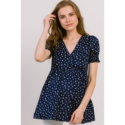 Hello Miz Maternity Floral Wrap Nursing Top with Empire Waist