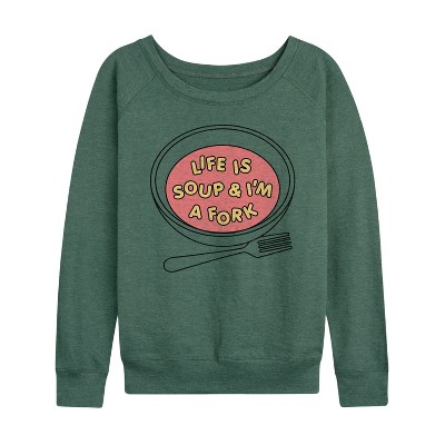 Women's - Instant Message - Life Is Soup; I'm A Fork Lightweight French Terry Wide Neck Long Sleeve Graphic Shirt