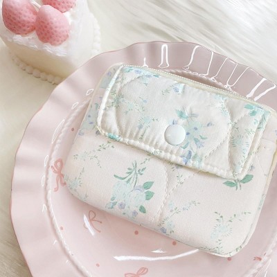 Narwey Cotton Quilted Floral Coin Pouch with Cute Prints Zipper for Women Girls (BLUEFLOWER)
