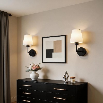 YANSUN 2-Pack Wall Sconces with Fabric Shade, E26 Base, Matte Black, Remote Control RGBCW Dimmable Indoor Lighting