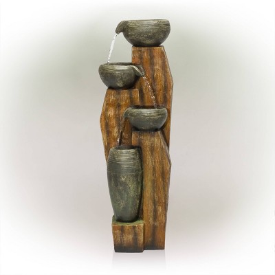 40" Cascading Mossy Jars Stone Resin Fountain with LED Lights Gray - Alpine Corporation