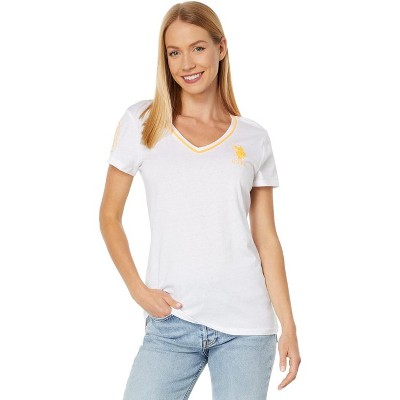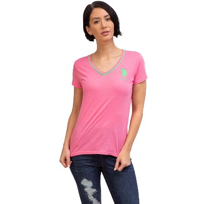U.S. Polo Assn. Women’s Stretch Neon Trim Short Sleeve V-Neck T-Shirt
