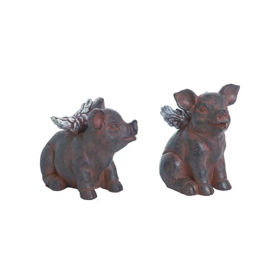 Transpac 6.5 in Brown Spring Farmhouse Country Pig Figurines Set of 2 with Wings for Spring and Summer Decor