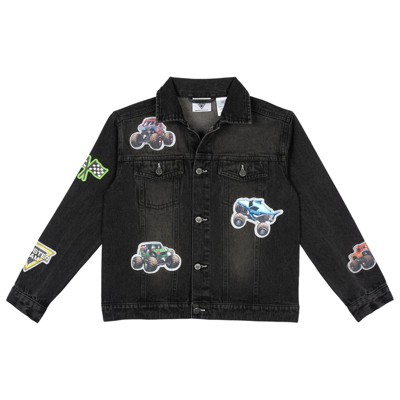 Monster Jam Grave Digger El Toro Loco Megalodon Little Boys Denim Jacket Logo Black 7-8