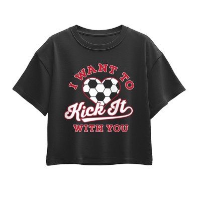 Girls' - Instant Message - I Want to Kick it With You Soccer Short Sleeve Boxy Graphic T-Shirt