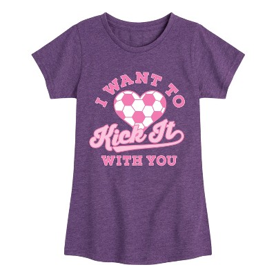 Girls' - Instant Message - I Want to Kick it With You Soccer Fitted Short Sleeve Graphic T-Shirt