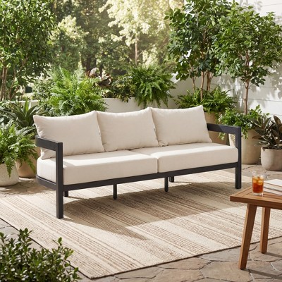 Heynemo Metal Outdoor Couch, All-Weather Metal Patio 3-seat Sofa with Soft Thick Cushions, Patio Sofa Couch for Porch Backyard Garden