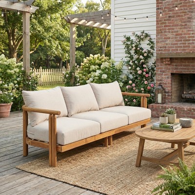 ModernLuxe Outdoor 3-Seat Sofa Patio Lounge Sofa Garden Leisure Seat with Soft Cushion & Rust-Resistant Frame, Beige&Light Teak