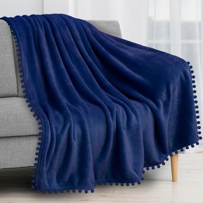 PAVILIA Fleece Pom Pom Blanket Throw for Sofa Bed, Soft Lightweight Pompom Fringe Blanket for Couch