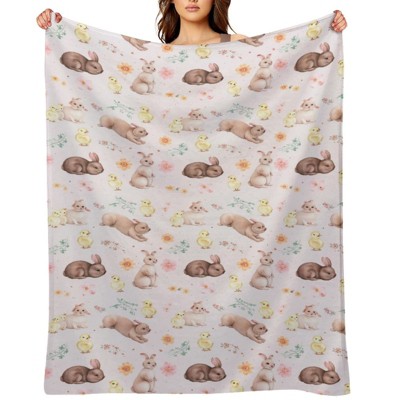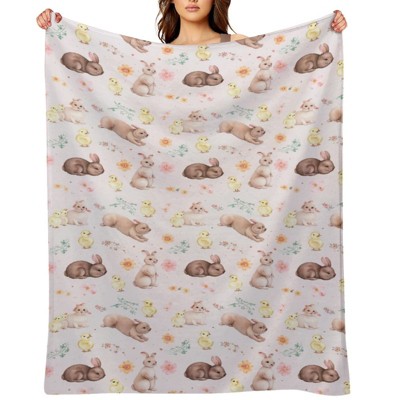 Easter Throw Blanket, Soft Flannel Bunny Blanket with Watercolor Floral Design, Lightweight Warm Easters Blanket Throw for Couch Sofa Bed 60x80 inches