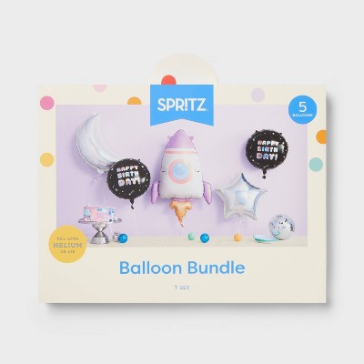 5ct Space Happy Birthday Foil Balloon Bouquet Pink and Purple - Spritz™