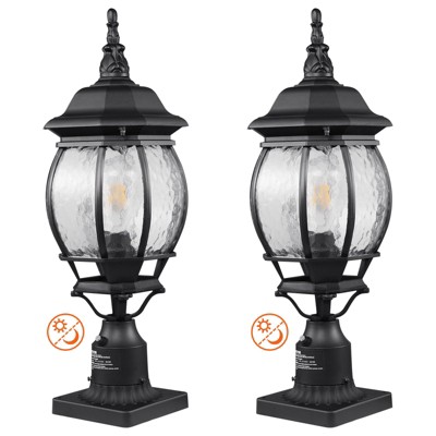 2 Pack Dusk to Dawn Outdoor Post Light, 20.87 in Waterproof Lamp Post Light Fixtures with Glass Shade, Pier Mount Base for Patio Garden Pathway