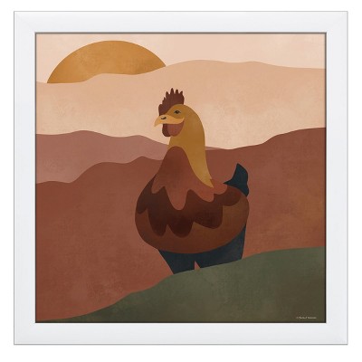 12" x 12" Mod Boho Rooster Framed Wall Art, Contemporary Nature and Animal Home Décor, Glass Facing and Hanging Hardware Included