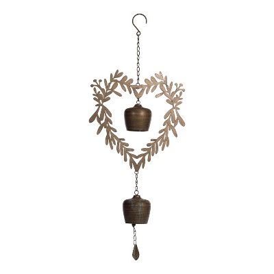 Transpac Metal Hanging Heart Wreath with Bells Rusty for Spring Wall and Entryway Decor