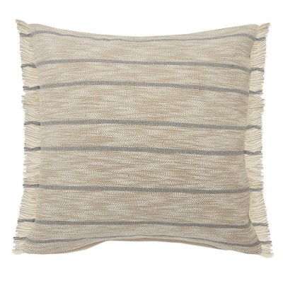 LR Home Ox Bay Tan/Grey Stripe Jute Blend Pillow Cover