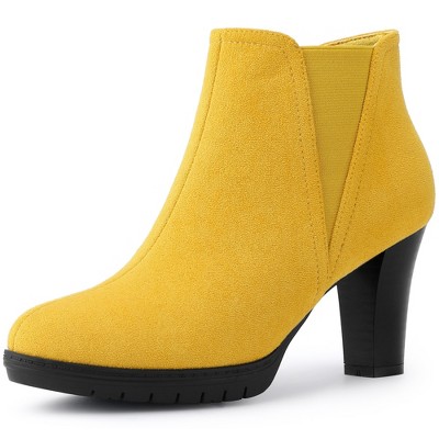 BLISSFUL STEP Women's Round Toe Block Heels Chelsea Ankle Boots
