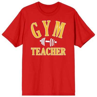 Gym Teacher Dumbbell Adult Red Crew Neck Short Sleeve T-shirt