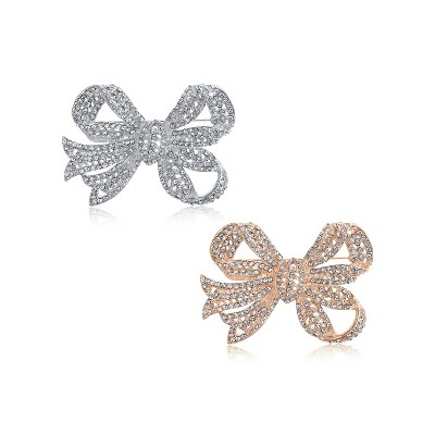 Bling Jewelry Set of 2 Victorian Style Crystal Filigree Ribbon Brooch Pin Rose Gold Plated