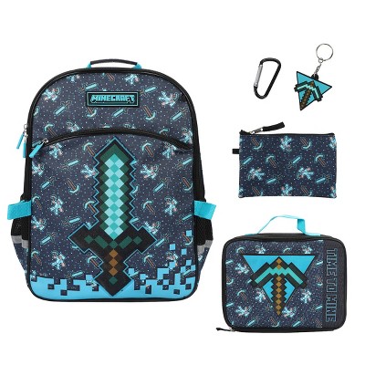 Minecraft Diamon Sword 5-Piece 16” Backpack And Lunch Set For School & Travel
