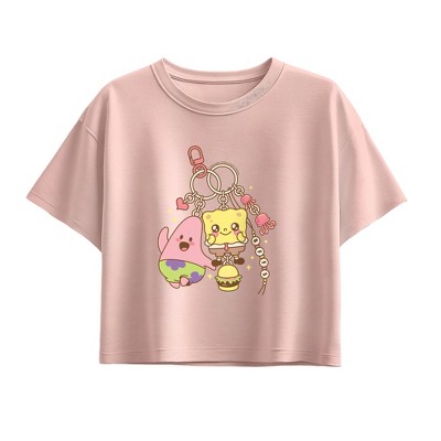 Girls' - SpongeBob SquarePants - Keychain Short Sleeve Boxy Graphic T-Shirt