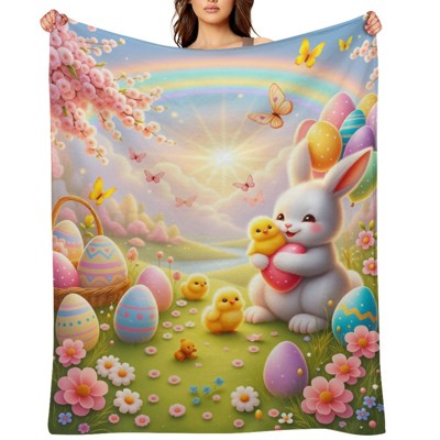 Easter Pattern Blanket Cute Bunny, Ultra Soft Micro Flannel Blanket for Bed Couch Living Room 60x80 inches