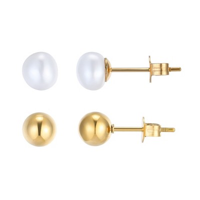 Adornia 5mm Freshwater Pearl and 18K Gold Ball Stud Earring Set