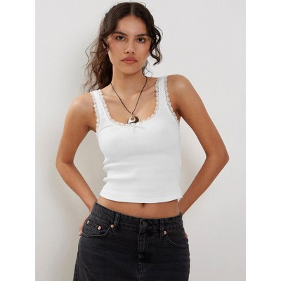 Clearlove Womens Lace Trim Ribbed Tank Tops Knit Square Neck Wide Strap Camisole Bow Slim Fit Going Out Cami Tops