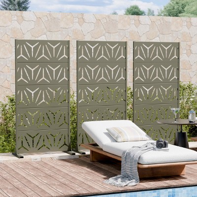 MAYEERTY Star 01 Olive Gray Galvanized Steel Room Divider, 59"x30"x16", 5-Piece Outdoor Decorative Screen