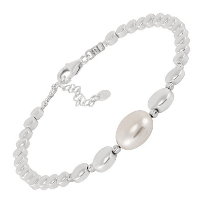 Silpada 'Shared Moments' Sterling Silver Hematite and Freshwater Pearl Beaded Bracelet, 7.5" + 1"