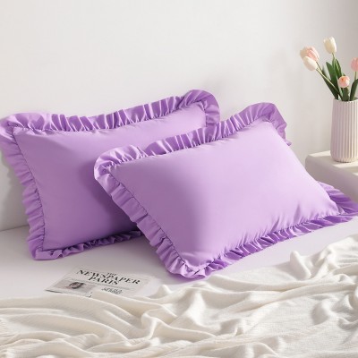 2 Pack Brushed Microfiber Ruffled Pillowcases, Soft Breathable Envelope Closure Pillow Cases - NTBAY